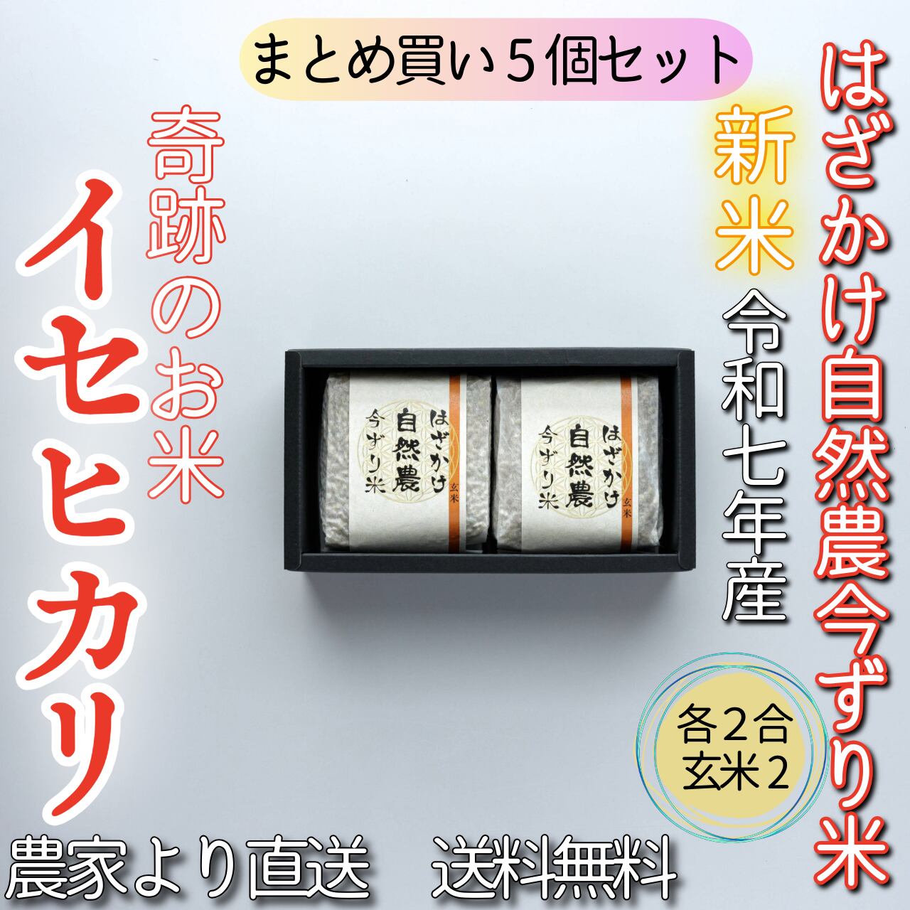 #【まとめ買い5個セット】奇跡のお米イセヒカリ はざかけ自然農今ずり米 玄米2個セット(送料無料)