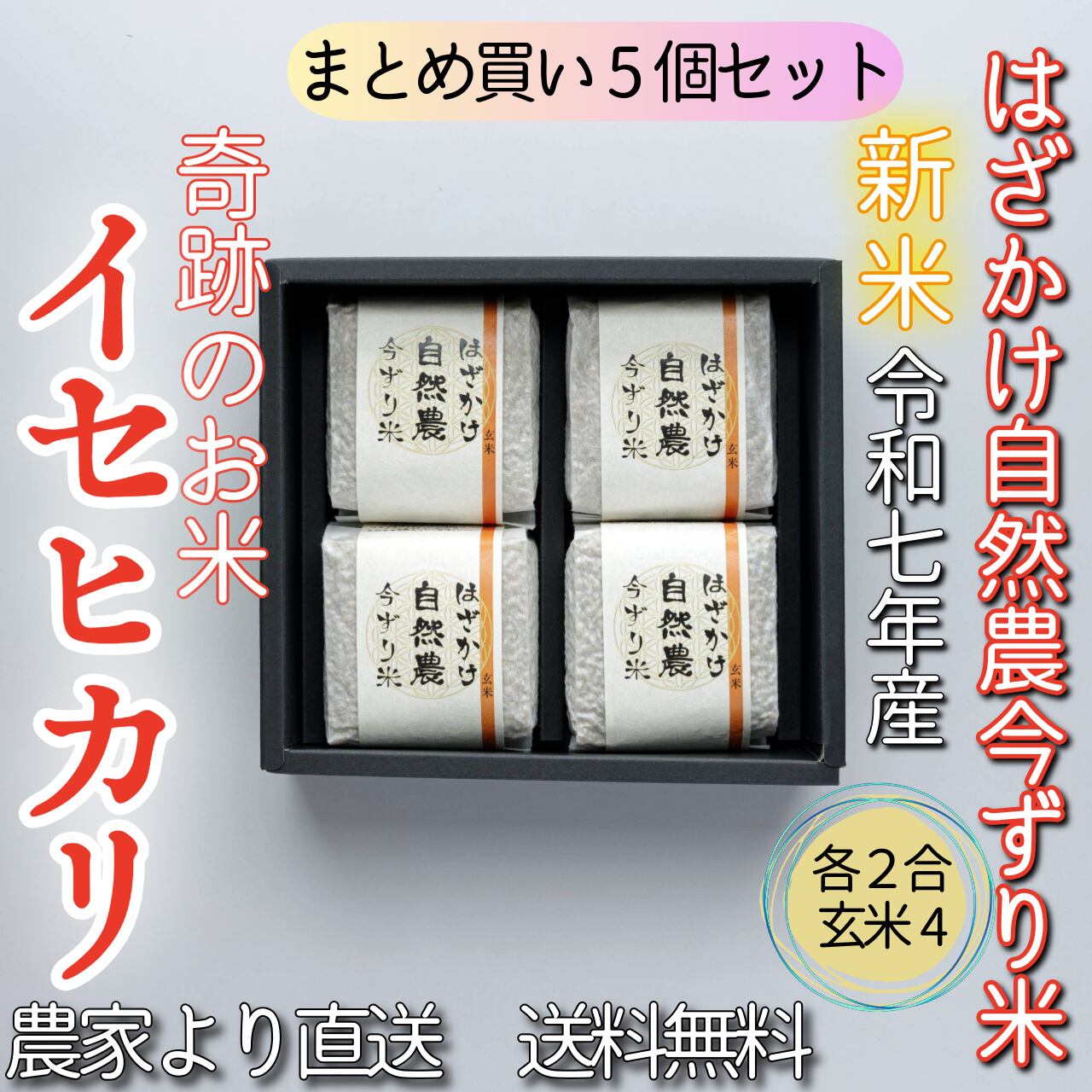 #【まとめ買い5個セット】奇跡のお米イセヒカリ はざかけ自然農今ずり米 玄米4個セット(送料無料)