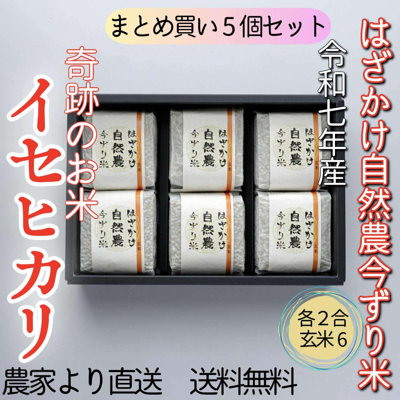 #【5個セット】奇跡のお米イセヒカリ はざかけ自然農今ずり米 玄米6個セット(送料無料)