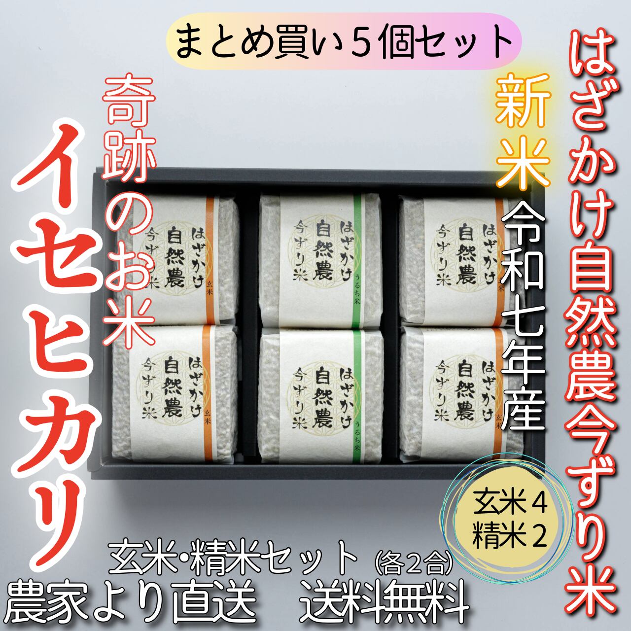 #【まとめ買い5個セット】奇跡のお米イセヒカリ はざかけ自然農今ずり米 玄米×4 精米×2個(各2合)(送料無料)