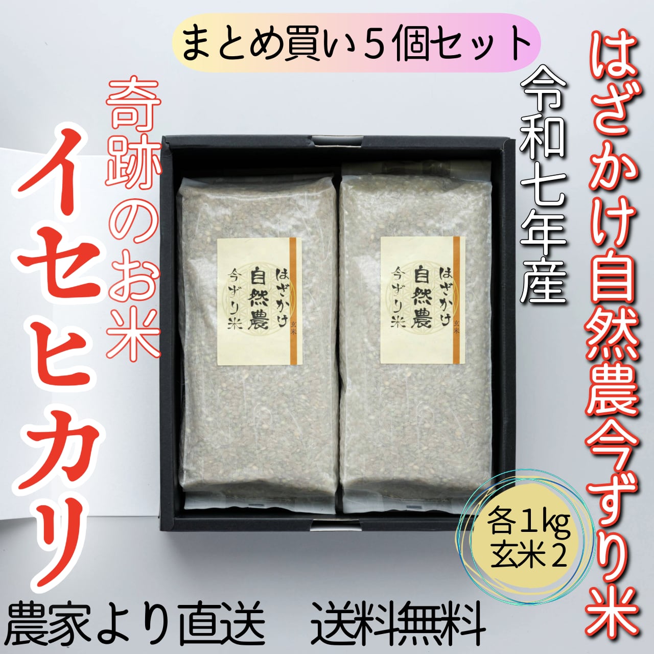 #【5個セット】奇跡のお米イセヒカリ はざかけ自然農今ずり米 玄米×2(各1㎏)(送料無料)