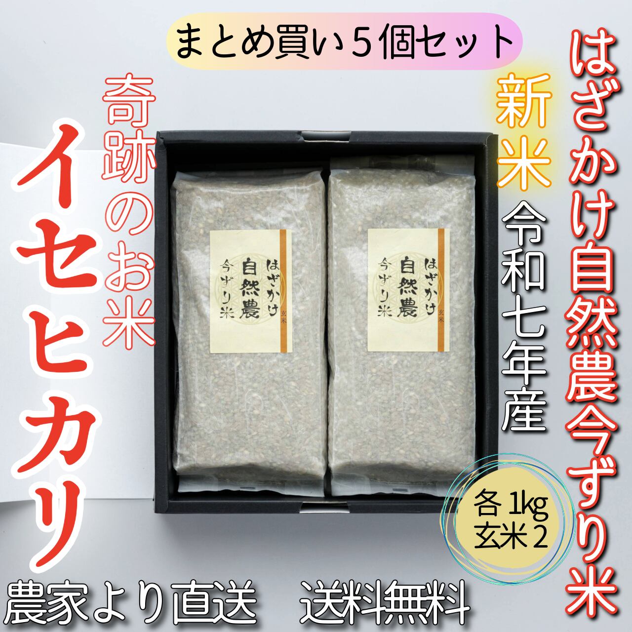 #【まとめ買い5個セット】奇跡のお米イセヒカリ はざかけ自然農今ずり米 玄米×2(各1㎏)(送料無料)