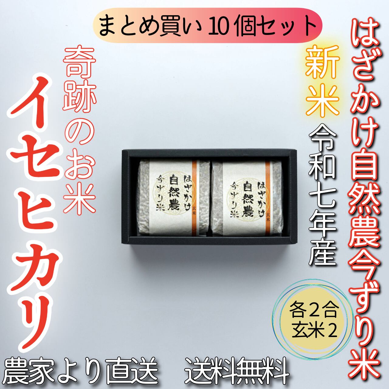 #【まとめ買い10個セット】奇跡のお米イセヒカリ はざかけ自然農今ずり米 玄米2個セット(送料無料)