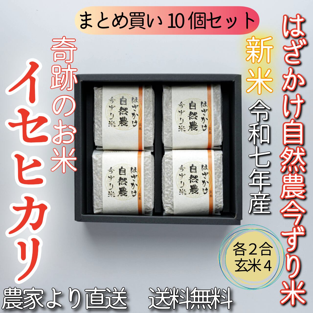 #【まとめ買い10個セット】奇跡のお米イセヒカリ はざかけ自然農今ずり米 玄米4個セット(送料無料)