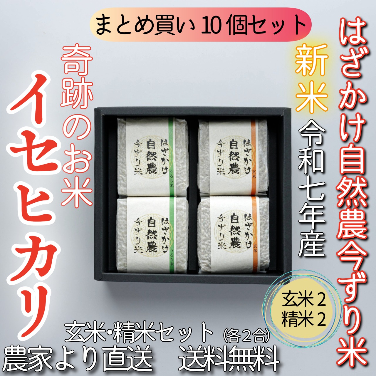#【まとめ買い10個セット】奇跡のお米イセヒカリ はざかけ自然農今ずり米 玄米×2・精米×2(各2合)(送料無料)