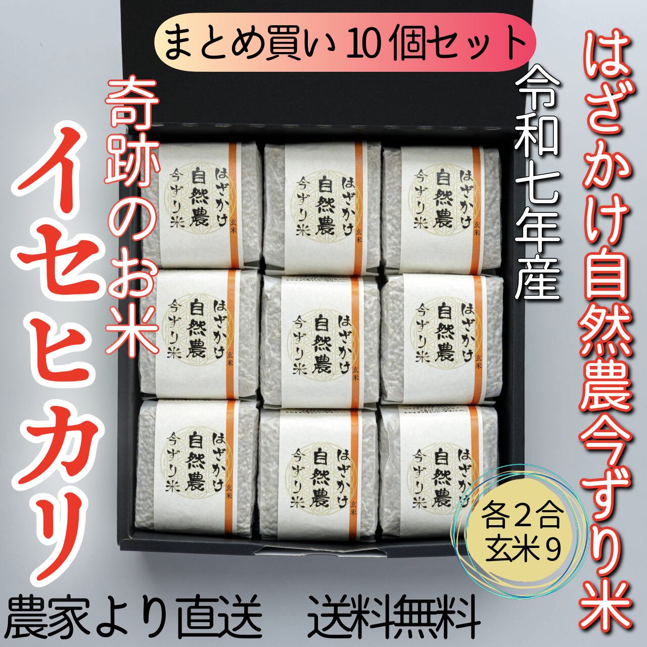 #【10個セット】奇跡のお米イセヒカリ はざかけ自然農今ずり米 玄米9個セット(送料無料)