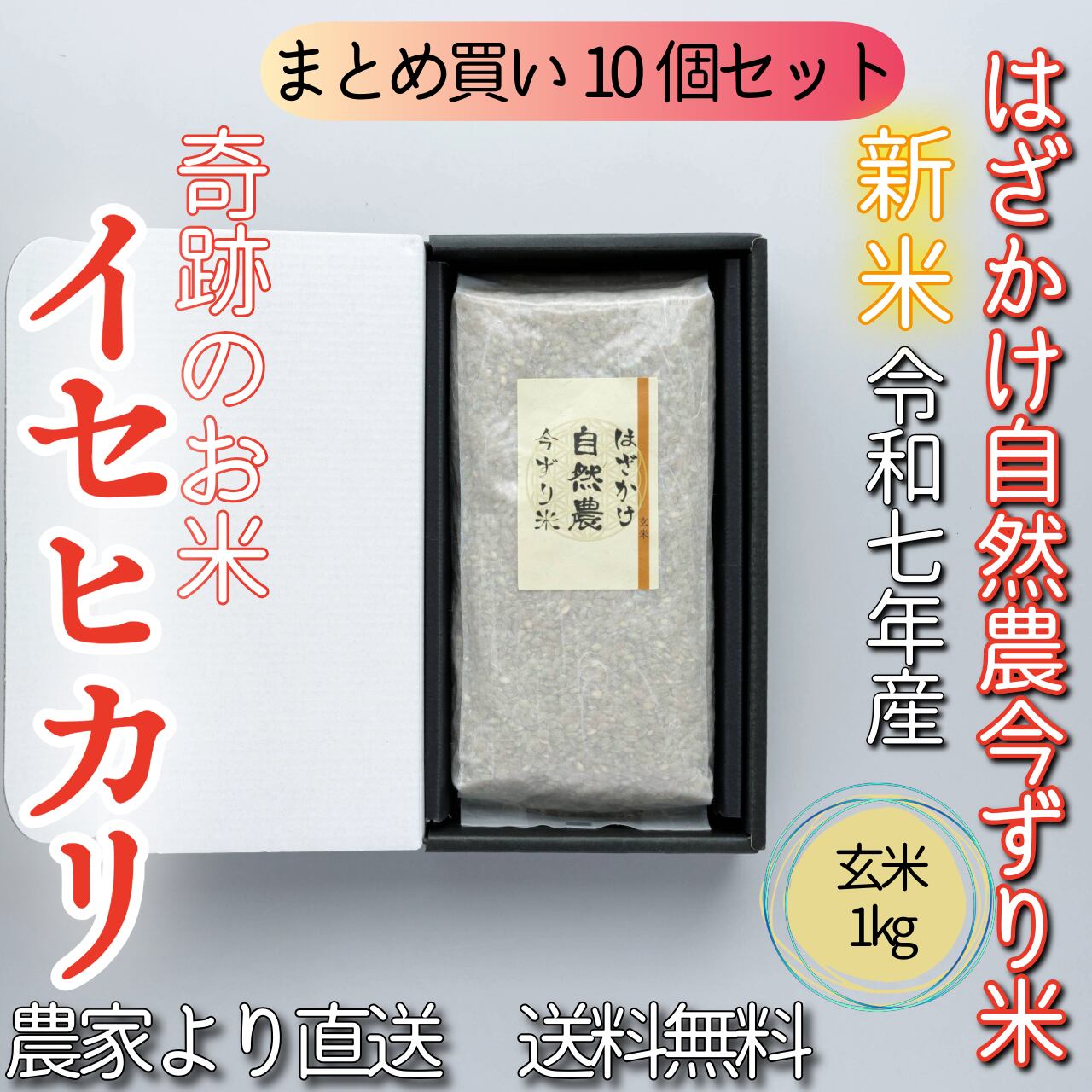 #【まとめ買い10個セット】奇跡のお米イセヒカリ はざかけ自然農今ずり米 玄米×1㎏(送料無料)