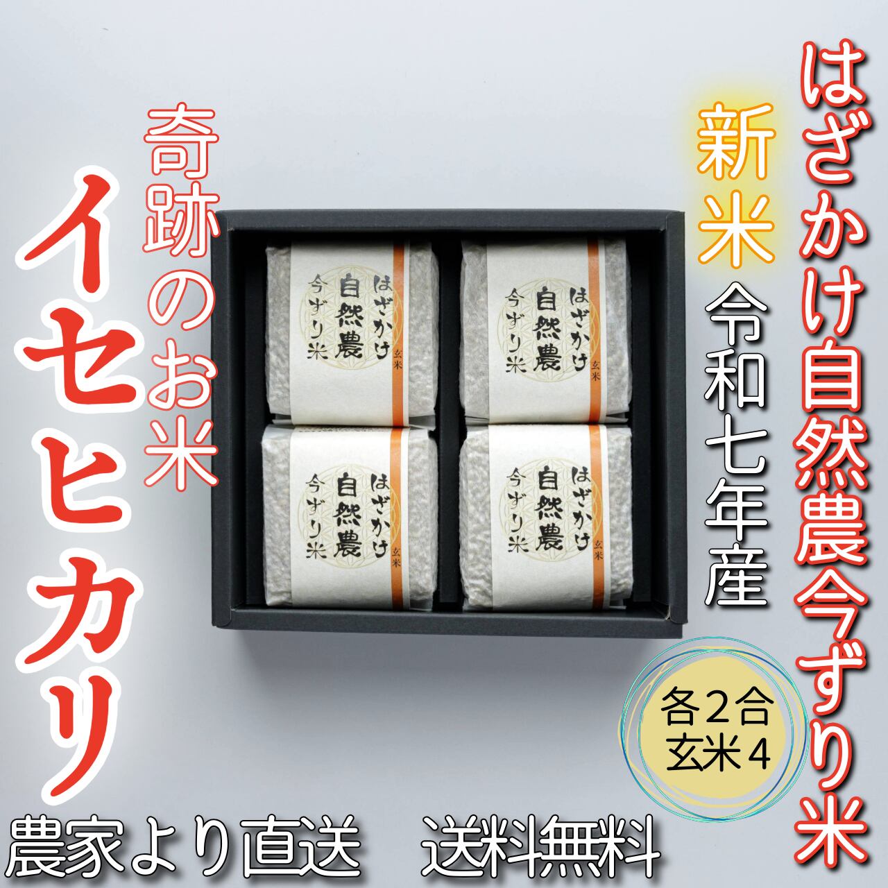 #奇跡のお米イセヒカリ はざかけ自然農今ずり米 玄米4個セット(送料無料)