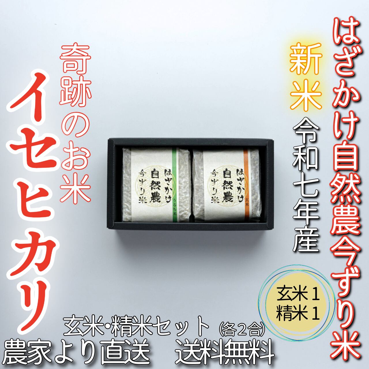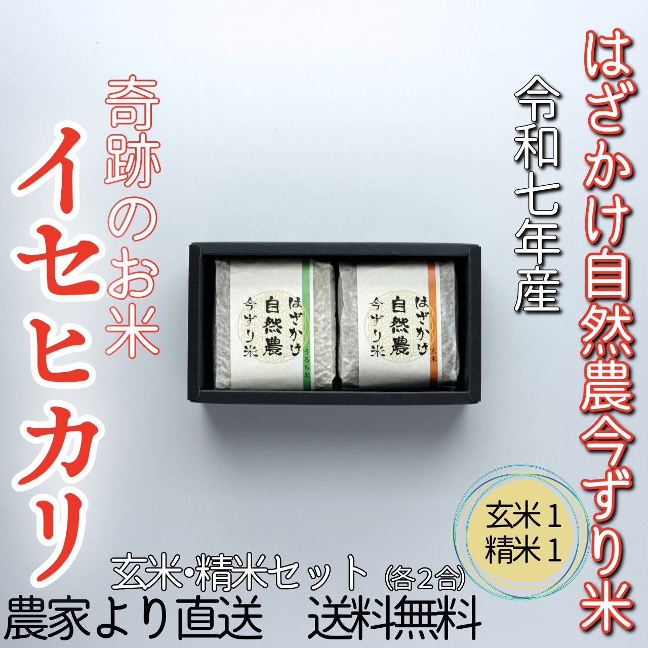 #奇跡のお米イセヒカリ はざかけ自然農今ずり米 玄米×1・精米×1(各2合)(送料無料)