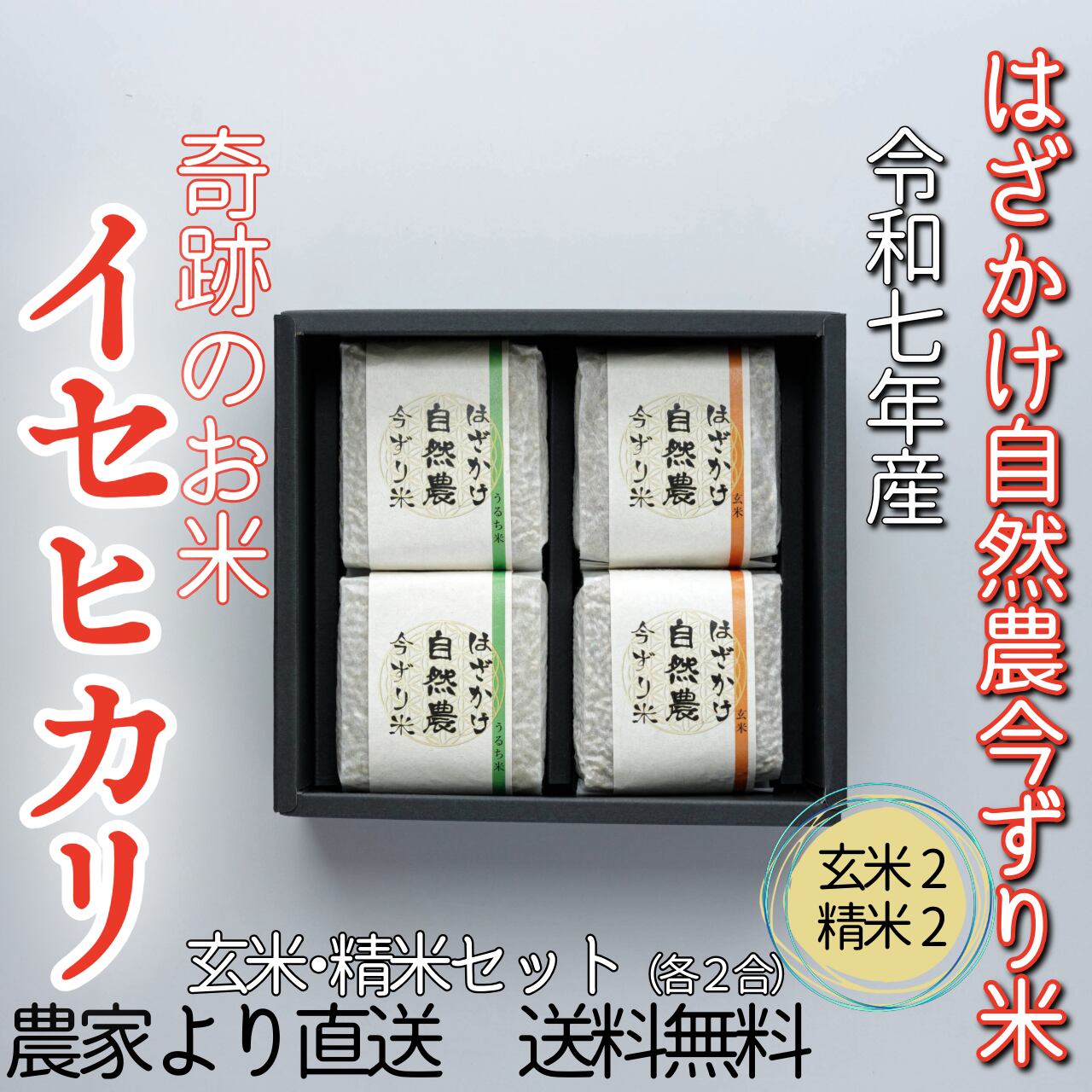 #奇跡のお米イセヒカリ はざかけ自然農今ずり米 玄米×2・精米×2(各2合)(送料無料)