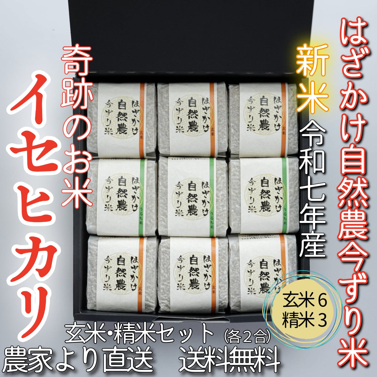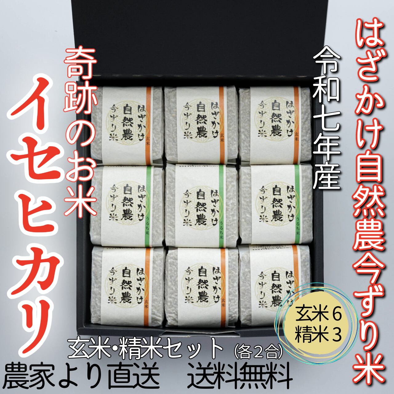 #奇跡のお米イセヒカリ はざかけ自然農今ずり米 玄米×6・精米×3(各2合)(送料無料)