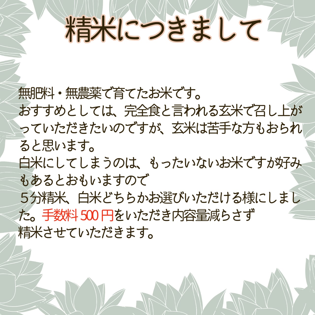 追加500円で精米させていただきます。